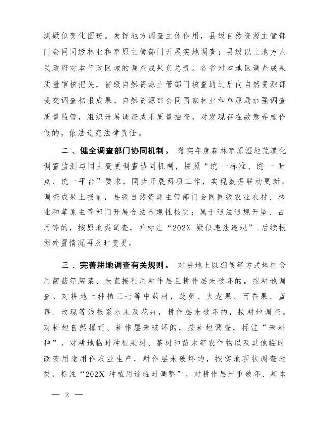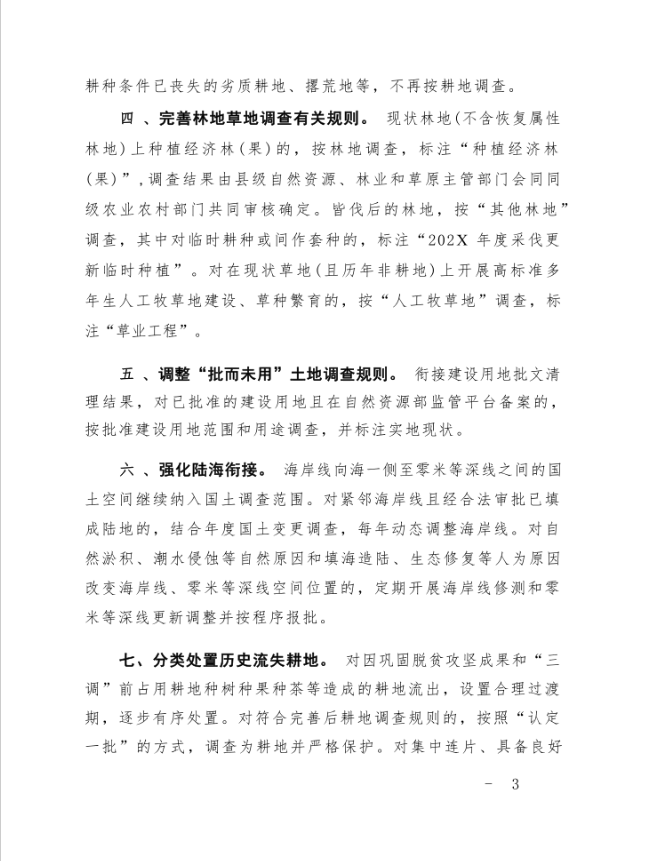 该通知附件1 《2025年度全国国土变更调查及森林草原湿地荒漠调查监测实施方案》,针对耕地调查作出5项具体规定: